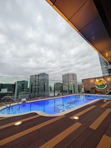 34Fにあり、扉の向こうにはプールと、広がる夜景という絶景のレストランで、美味しいお料理とお酒のおもてなしを、ありがとうございました。