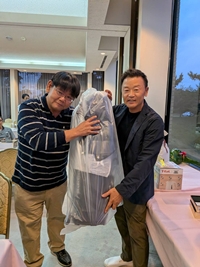 また、特別賞をいくつか。オフ・ビート賞には和歌山名産品の詰め合わせを、JUN蔵カップからのキャディバックは、Kさんがゲット。そして職人手作り練習器具は、ベスグロを取ったTさんの手にわたりました。(←必要ないのではと思う人もちらほら・・・)